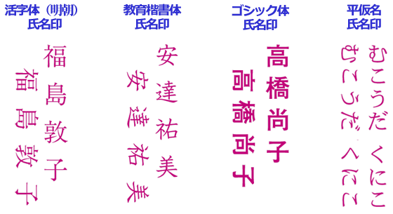| 鋳造ゴム印(活字体) | 毛筆ゴム印(楷書行書) | |